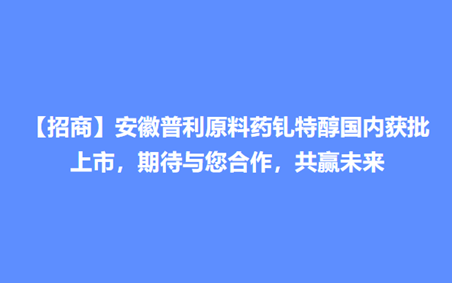 【招商】安徽普利原料藥釓特醇國(guó)內(nèi)獲批上市,期待與您合作,共贏未來(lái)