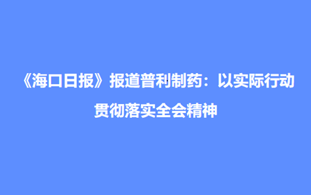 《??谌?qǐng)?bào)》報(bào)道普利制藥:以實(shí)際行動(dòng)貫徹落實(shí)全會(huì)精神