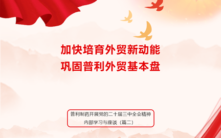 加快培育外貿(mào)新動(dòng)能,鞏固普利外貿(mào)基本盤——普利制藥開展黨的二十屆三中全會(huì)精神內(nèi)部學(xué)習(xí)與座談(篇二)