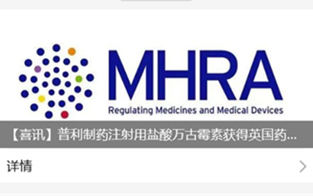 普利制藥注射用鹽酸萬古霉素獲得英國藥品和健康產(chǎn)品管理局上市許可