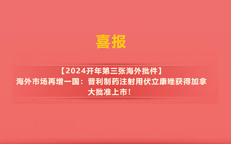 海外市場再增一國:普利制藥注射用伏立康唑獲得加拿大批準上市!近日,普利制藥收...