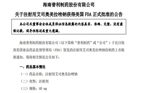 普利喜訊!注射用艾司奧美拉唑首發(fā)出口美國!