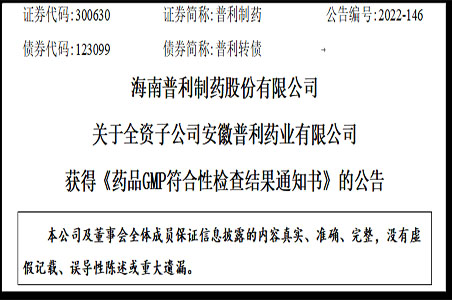 01 普利制藥具備氫氧化鎂原料藥供貨能力海南普利制藥股份有限公司(以下簡稱“公司”)全資子公司安徽普利藥業(yè)有...