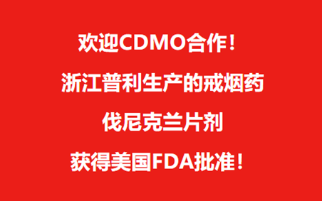 【國(guó)際招商】歡迎CDMO合作!浙江普利生產(chǎn)的戒煙藥伐尼克蘭片劑獲得美國(guó)FDA批準(zhǔn)!