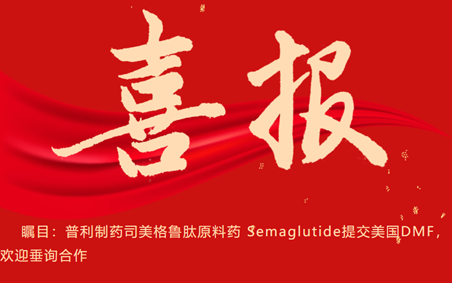 矚目:普利制藥司美格魯肽原料藥 Semaglutide提交美國DMF,歡迎垂詢合作