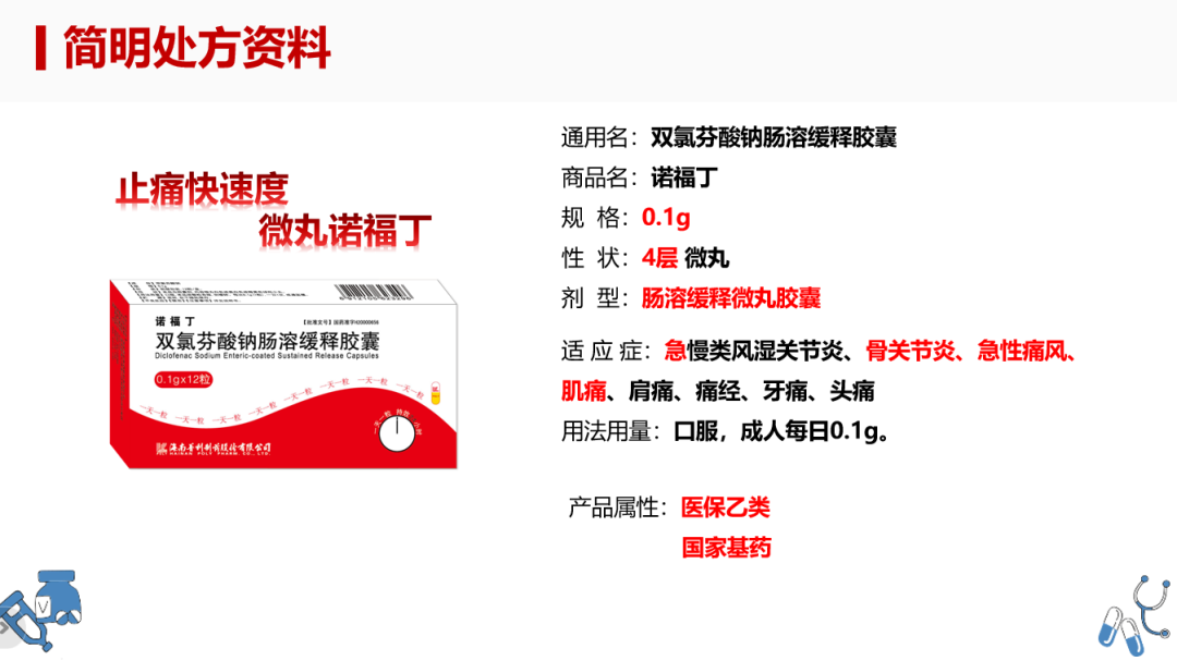 普利制藥以雙氯芬酸為有效成分,采用獨(dú)家微丸專利技術(shù),研發(fā)4重微丸,制作獨(dú)家腸溶緩釋膠囊。藥物服用后可快速起效,最快15分鐘迅速止痛;并且作用時(shí)間長(zhǎng),鎮(zhèn)痛時(shí)間維持24小時(shí);在關(guān)節(jié)炎、風(fēng)濕疼痛,腰背痛、痛經(jīng)、痛風(fēng)等均有良好的效果