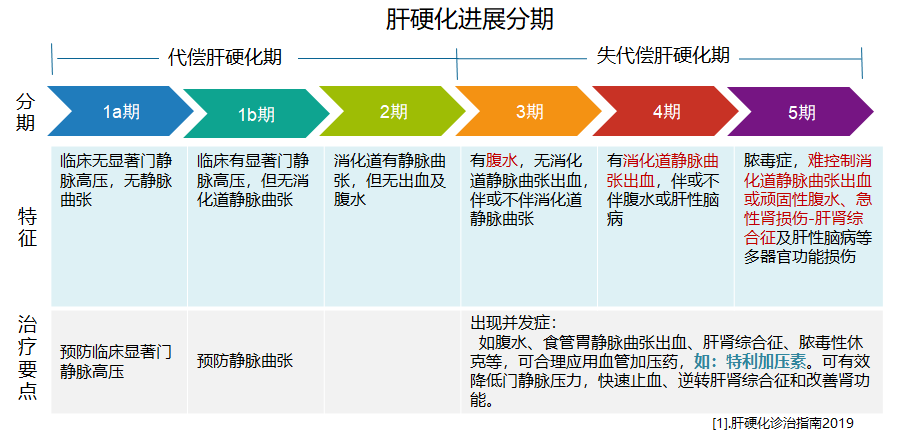 據(jù)調(diào)查顯示,我國目前肝硬化患者約700萬,且仍呈增長趨勢(shì)。在臨床上,對(duì)肝硬化的進(jìn)展分為5期,代償期(1、2期)和失代償期(3、4、5期),其年病死率分別為1.5%、2%、10%、21%和87%。對(duì)于肝硬化患者進(jìn)展到失代償期,影像學(xué)檢查可有典型門靜脈高壓及肝硬化證據(jù),多數(shù)臨床特征伴有腹水、消化道出血、肝性腦病等并發(fā)癥。